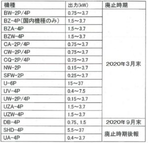 (株)鶴見製作所(本社:大阪)より、一部機種の製造中止案内が届きました。